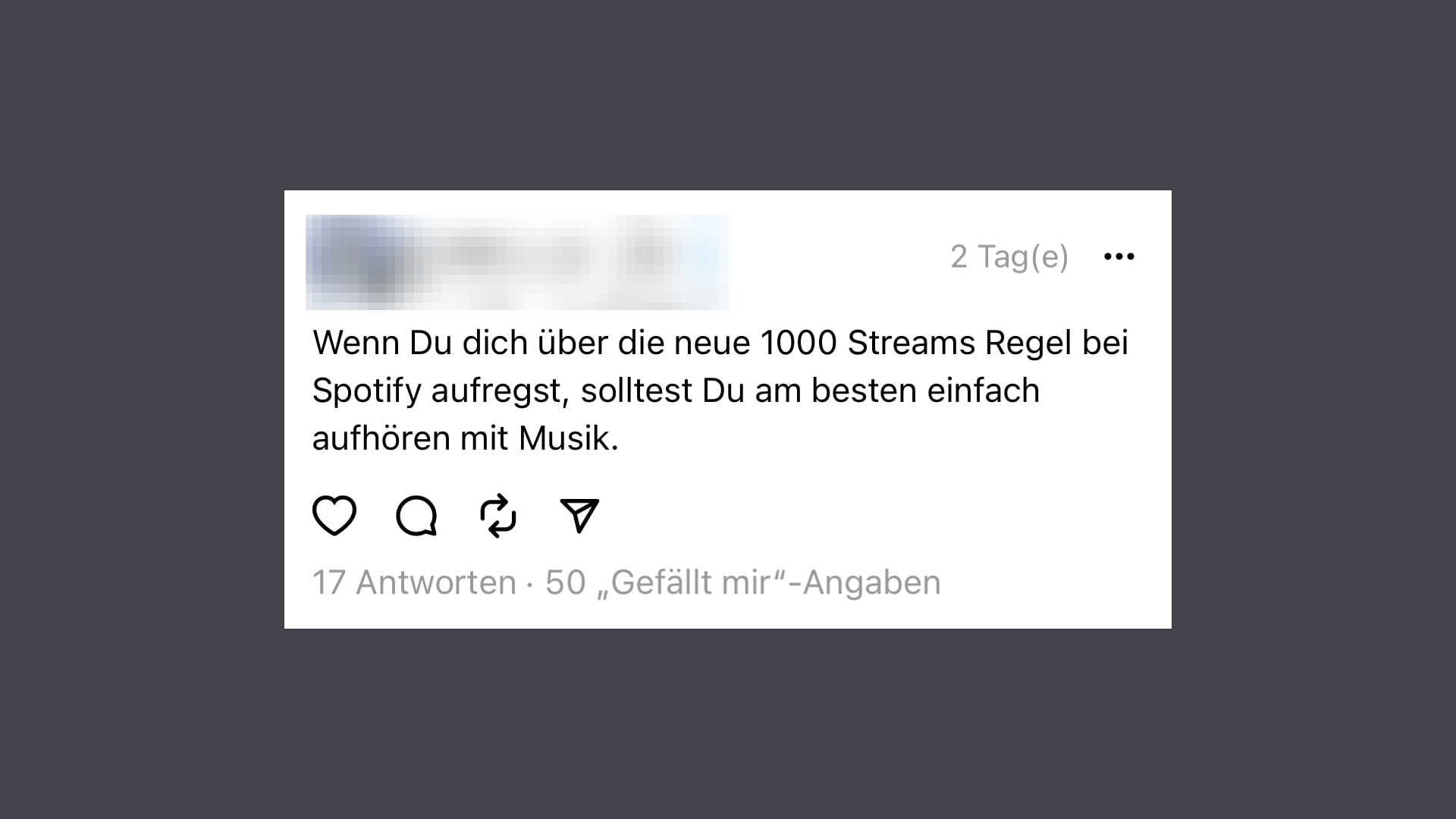 A trendy subject for those guys is Spotify's new policy to only pay artists for songs with more than 1000 streams. And yes, I know: By writing about it, I totally catch the engagement bait for the recognition they so desperately seek.