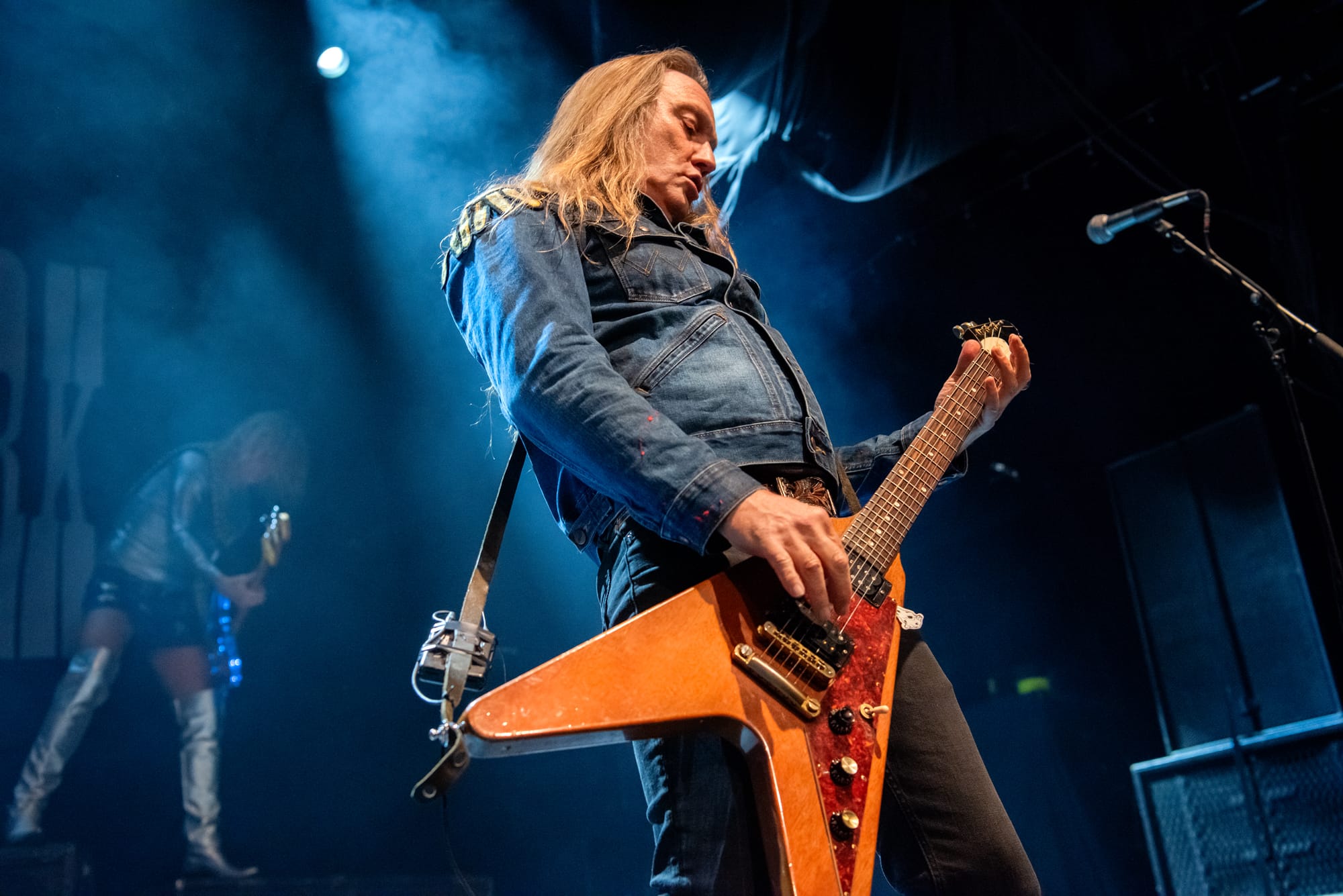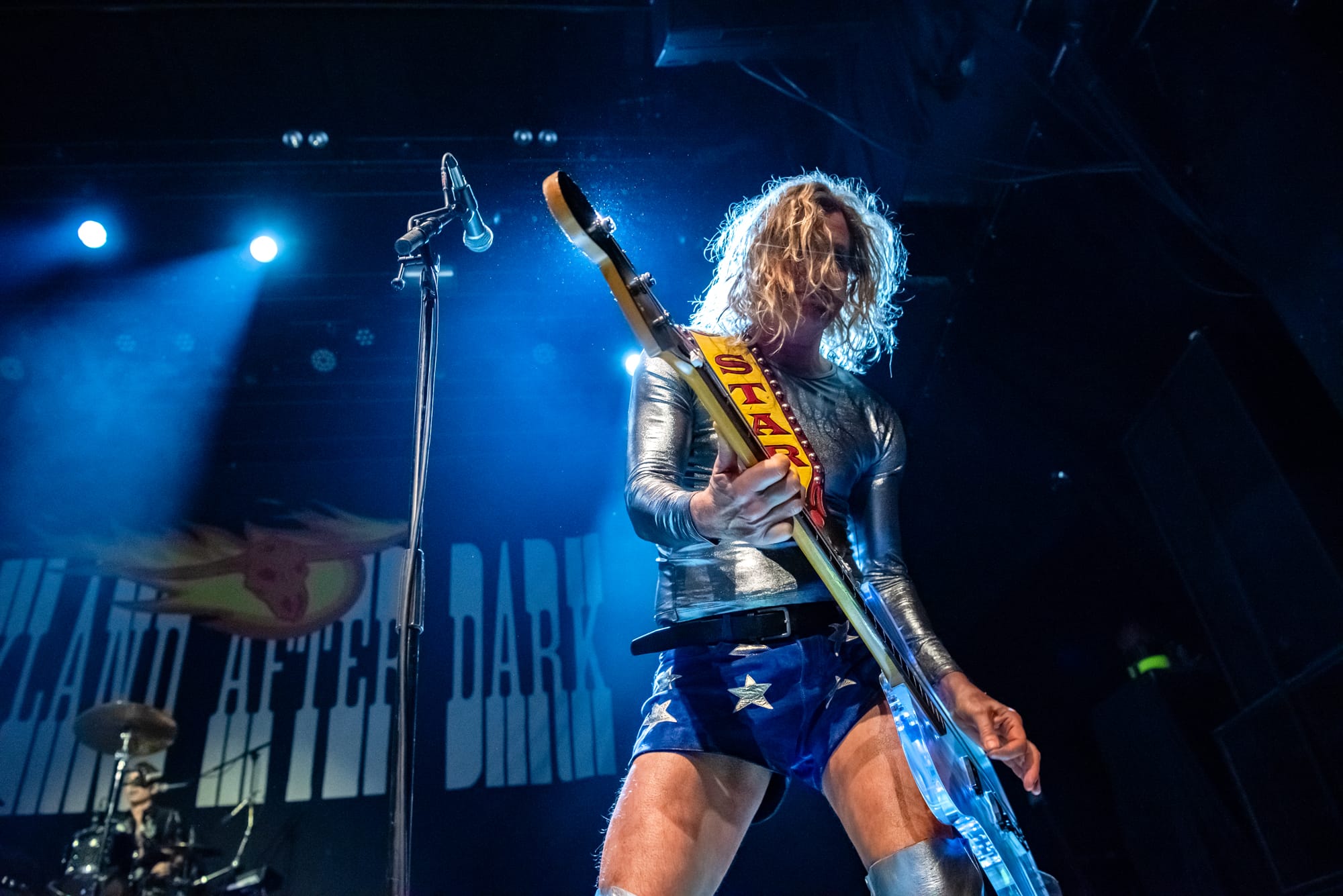 Jacob Binzer on guitar looked like a magician in his red shirt, vest, and top hat; Laust Sonne appeared behind the drums in a glam-rock overall; singer Jesper Binzer embodied a modern cowboy in a denim jacket; and most striking of all was bassist Stig Pedersen, who looked like a ’70s star man in a shiny silver top, short shorts, and massive boots. I was genuinely surprised when Jesper spoke almost fluent German between songs, which added to the band’s easy charm and connection with the crowd.