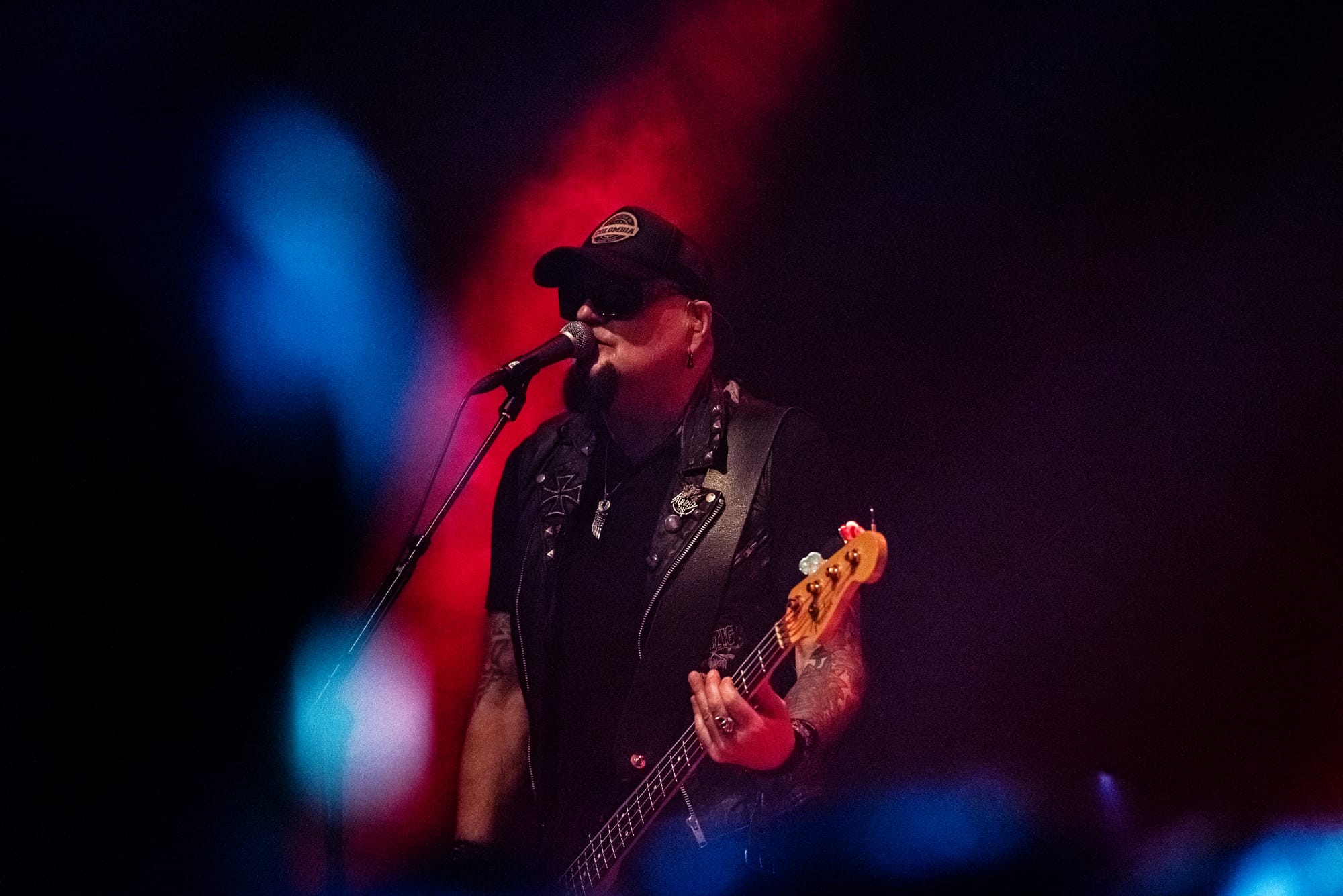 Their sound was strong and instantly transported me straight back to the ’80s—not that I ever experienced the ’80s. The set featured plenty of instrumental sections, giving every musician their moment to shine. Definitely worth mentioning were the many different two-string basses Stig used throughout the show. They were unlike anything I’ve ever seen and never failed to make me smile, especially when he was handed an even more absurd-looking one than before. Among them were a reversed bass, a rocket bass, an iron cross bass, a car bass, and even an “olive on a pick” bass.