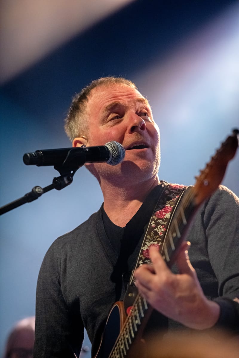 Stuart Murdoch arrived on stage in a noticeably bright mood. He spoke to the audience with the ease of someone greeting familiar faces. He joked about leaving grey Scottish weather behind and arriving in Bern to sunshine and mild air. He described how he had spent the day in a park, soaking up the light. At one point Murdoch insisted that the mountains visible from the city must be painted on because they looked too perfect to be real. The room responded with laughter that felt like shared relief after a long winter.